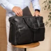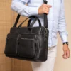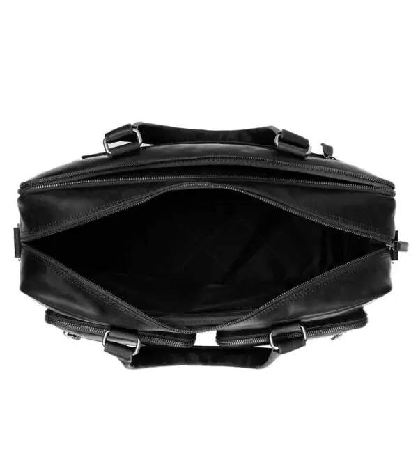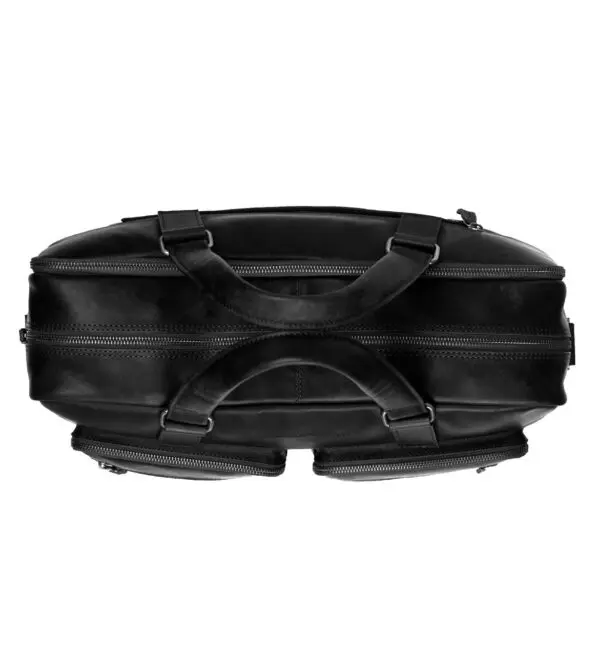 Þessi rúmgóða leðurfartölvutaska er með bólstruðu 17 tommu fartölvuhólfi. Hún er einnig með annað stórt hólf til að geyma eigur þínar á öruggan hátt.