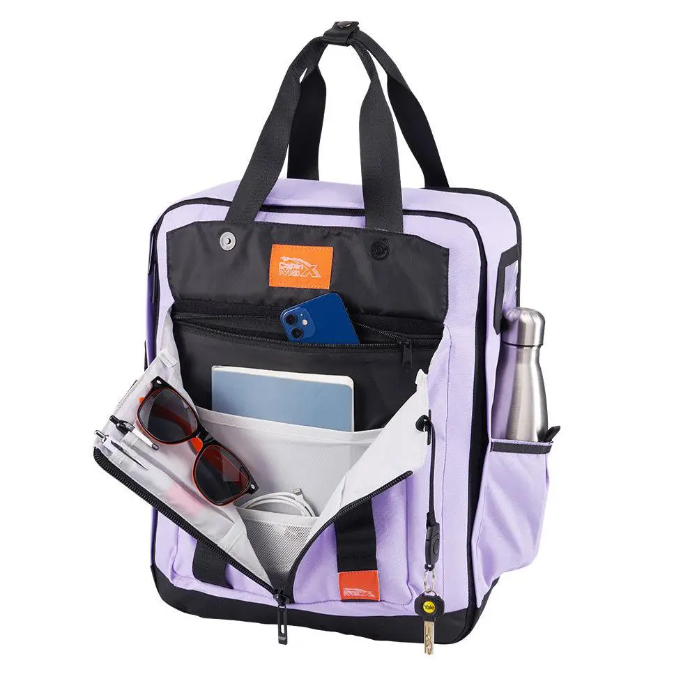 45X36X20CM Stílhrein hönnun og fullkomin til að forðast auka handfarangursgjöld hjá flugfélögum eins og easyjet.Er með bólstrað fartölvu/tæknihólf,vatnsflöskuvasa og skipulaggs hólf með lyklaklemmu.Bakpokaólar með stillanlegri brjóstól og sólgleraugnalykkju.Festing til að hengja á ferðatösku.Bakpokinn er vatnsheldur og framleiddur úr endurunnum plastflöskum.Glæsilegir og stilhreinir bakpokar.