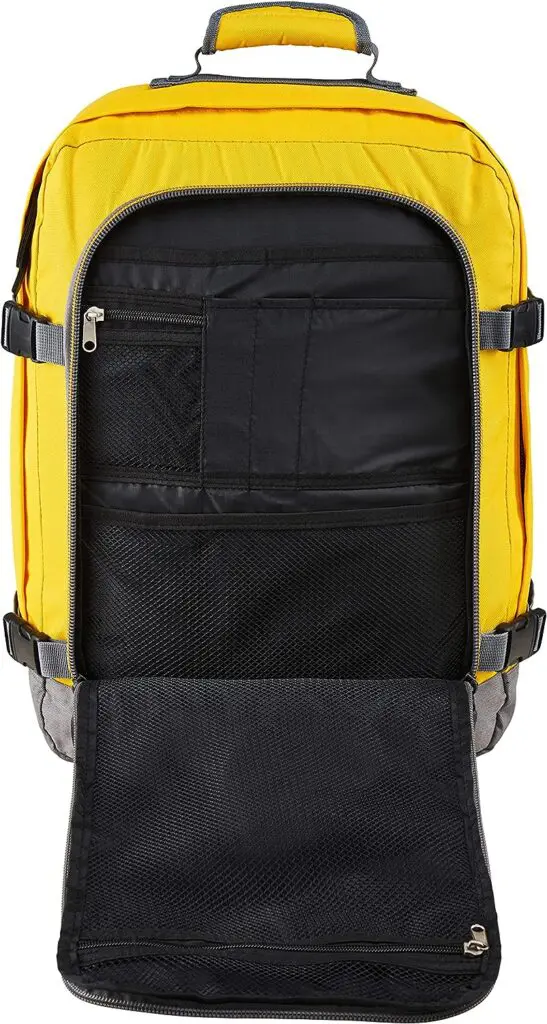 Er með risastórt 44L aðalpökkunarhólf, skipulags vasa að framan og fljótlegur rennilás sem er tilvalinn fyrir vegabréf og ferðaskilríki. Hástyrkur varanlegur, sturtuheldur og endurvinnanlegur 600D pólýester efni.