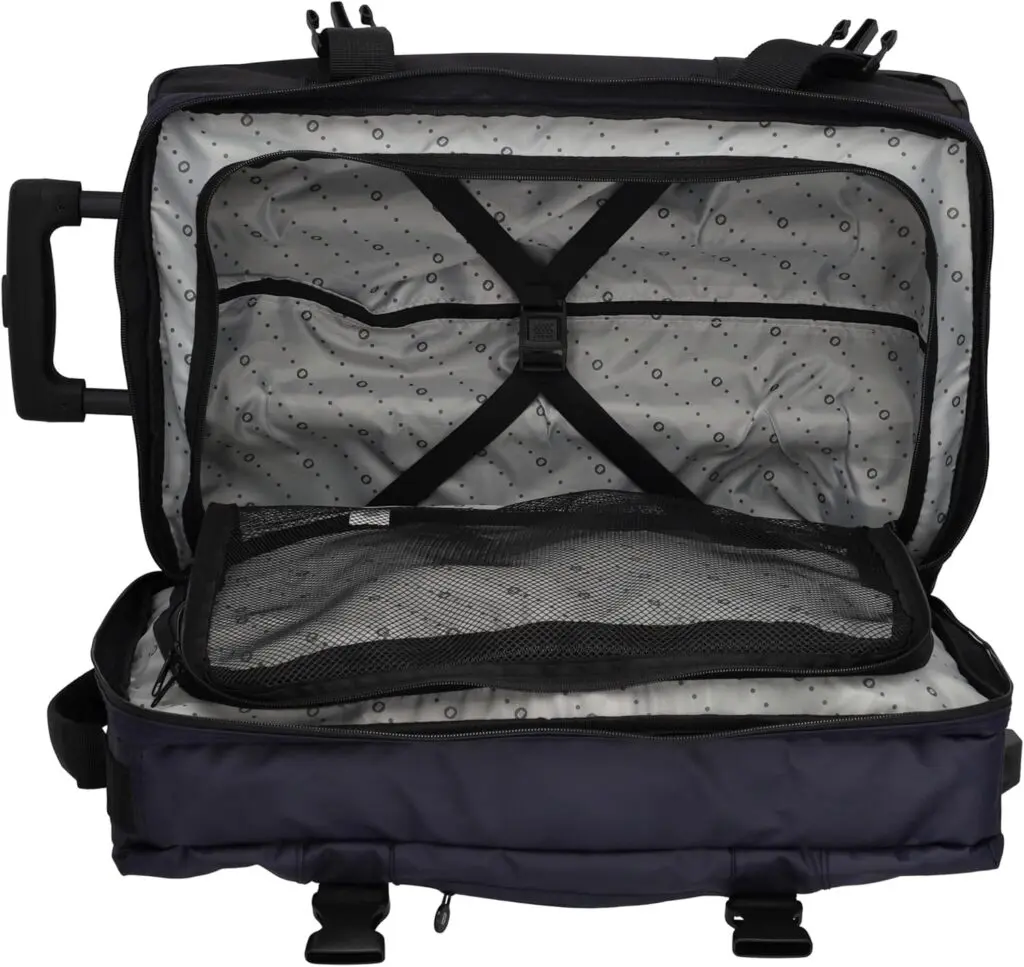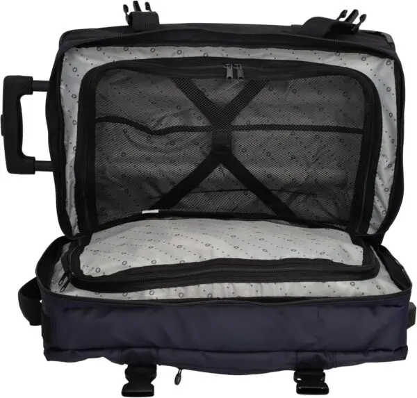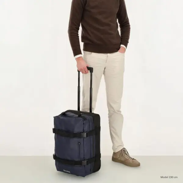Þökk sé tveimur hjólum og útdraganlegu handfangi er auðvelt að taka töskuna með sér. Handföngin á hliðunum gera hana auðvelda að lyfta. Fyrir aukið öryggi er taskan búin TSA-lás.Tilvalin sem lítil ferðataska, smáfarangur og handfarangur: nett stærð uppfyllir margar kröfur flugsins fyrir stuttar ferðir og viðskiptaferðir, auðveld í meðförum þökk sé hjólum og sjónaukahandfangi.