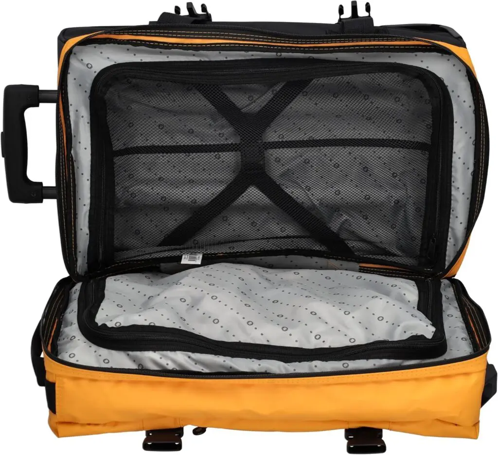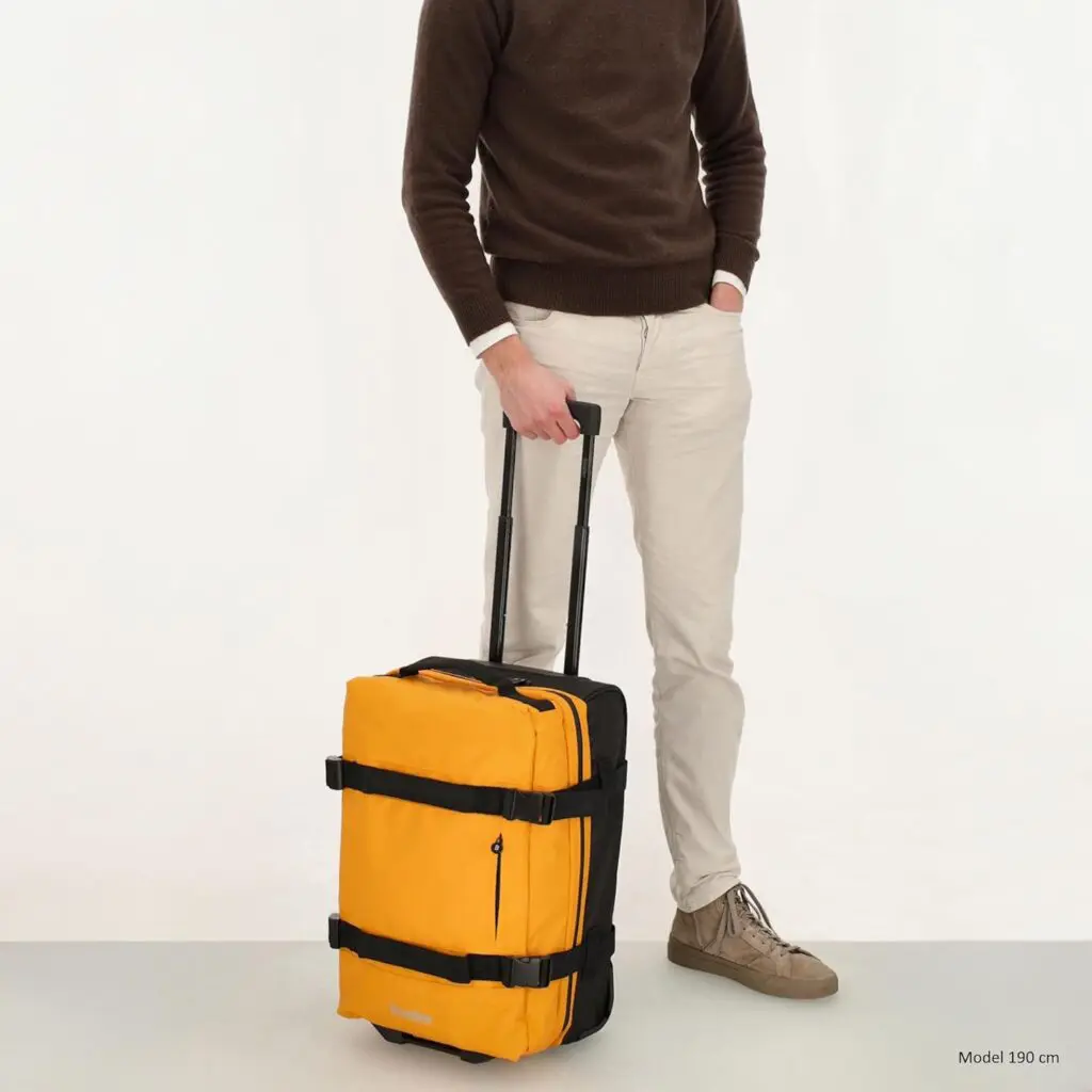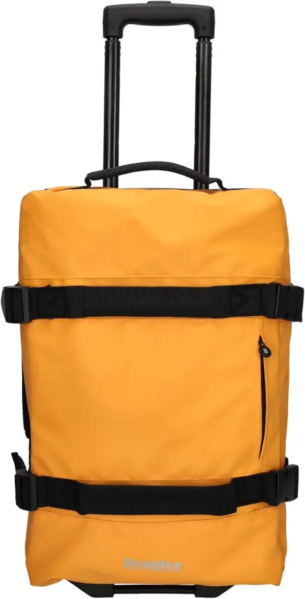 Beagles vatnshelda ferðataskan er hagnýt og vel hönnuð taska fyrir allar ferðir. Taskan er úr vatnsfráhrindandi efni og er með tvö hólf sem lokast með rennilás, sem heldur farangrinum þínum skipulögðum. Þökk sé tveimur hjólum og útdraganlegu handfangi er auðvelt að taka töskuna með sér. Handföngin á hliðunum gera hana auðvelda að lyfta. Fyrir aukið öryggi er taskan búin TSA-lás.Tilvalin sem lítil ferðataska, smáfarangur og handfarangur: nett stærð uppfyllir margar kröfur flugsins fyrir stuttar ferðir og viðskiptaferðir, auðveld í meðförum þökk sé hjólum og sjónaukahandfangi.