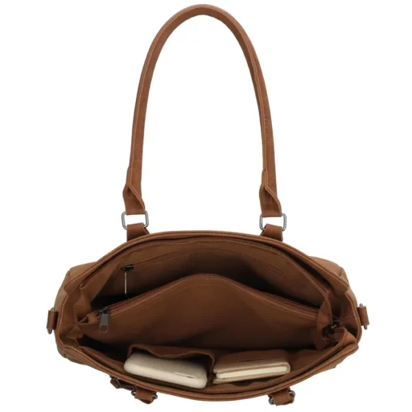 Beagles Cambrils axlartaskan er nett og hagnýt innkaupataska, tilvalin til daglegrar notkunar. Taskan er með aðalhólfi með rennilás og auka rennilásarhólfi sem gerir þér kleift að skipuleggja eigur þínar snyrtilega. Að innan eru tveir rennilásarvasar og rennilásarvasi fyrir minni nauðsynjar.