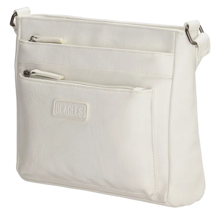 Dömur, athugið! Þið viljið örugglega láta sjá ykkur með þessari fallegu Beagles Murcia axlartösku! Þessi taska er líka mjög hagnýt. Hún er með tveimur rennilásvösum að framan, aðalhólfi með rennilás sem inniheldur miðvasa og rennilásvasa, og rennilásvasa að aftan. Nóg af hólfum til að skipuleggja eigur ykkar. Þökk sé stillanlegri axlaról er auðvelt að bera hana kross yfir líkamann eða yfir aðra öxlina! Viljið þið hana nú þegar?