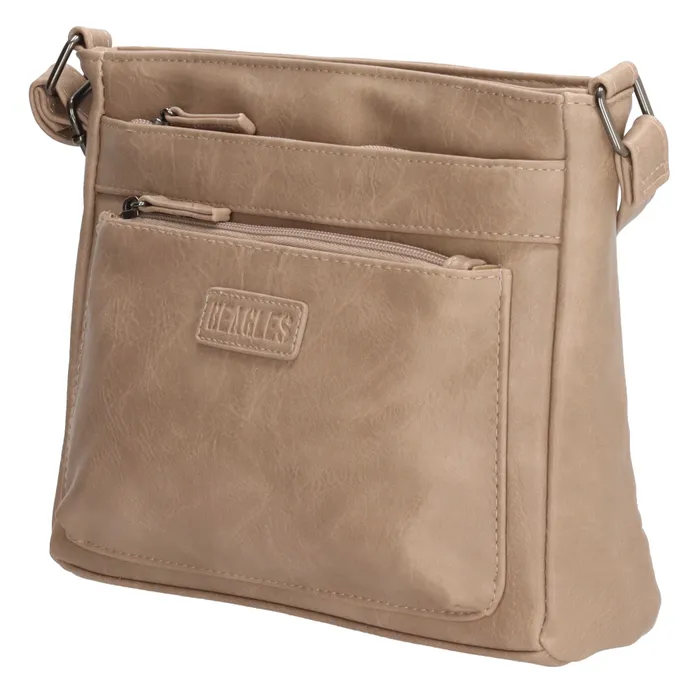 Dömur, athugið! Þið viljið örugglega láta sjá ykkur með þessari fallegu Beagles Murcia axlartösku! Þessi taska er líka mjög hagnýt. Hún er með tveimur rennilásvösum að framan, aðalhólfi með rennilás sem inniheldur miðvasa og rennilásvasa, og rennilásvasa að aftan. Nóg af hólfum til að skipuleggja eigur ykkar. Þökk sé stillanlegri axlaról er auðvelt að bera hana kross yfir líkamann eða yfir aðra öxlina! Viljið þið hana nú þegar?