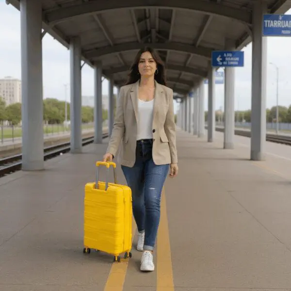 Ferðataskan býður upp á rúmgott rými fyrir öll föt og nauðsynjar og lokast auðveldlega með mjúkum rennilás. Þökk sé útdraganlegu handfangi og fjórum hreyfanlegum hjólum geturðu auðveldlega fært hana í gegnum tengipunktana og lyft henni auðveldlega með handfanginu að ofan eða á hliðinni. Hvort sem þú ert að fara í helgarferð eða stutta viðskiptaferð, þá mun þessi ferðataska halda þér skipulögðum og stílhreinum.