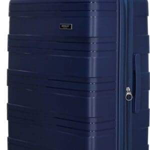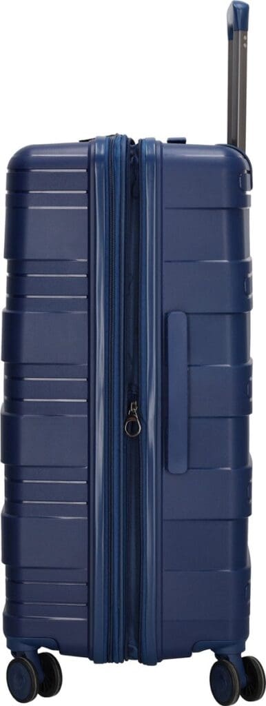 Stór, hörð ferðataska úr pólýprópýleni úr Travel Originals línunni frá Beagles Originals . Ferðataskan er með rennilás í fullri lengd sem hægt er að læsa með föstum TSA samsetningarlás að ofan. Innra byrðið er fóðrað og inniheldur rennilásarhólf, vasa með rennilás og ólar. Hún er einnig með handföng að ofan og á hliðunum og þægilegt tvöfalt fjögurra hjóla kerfi.