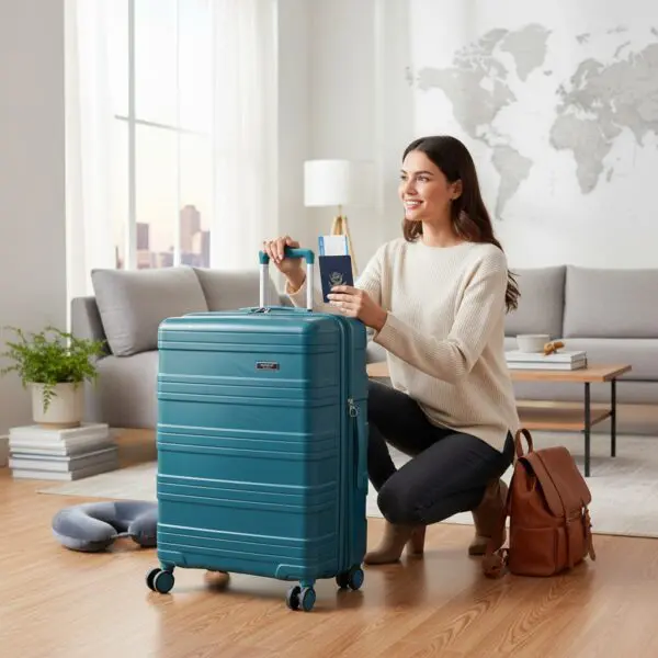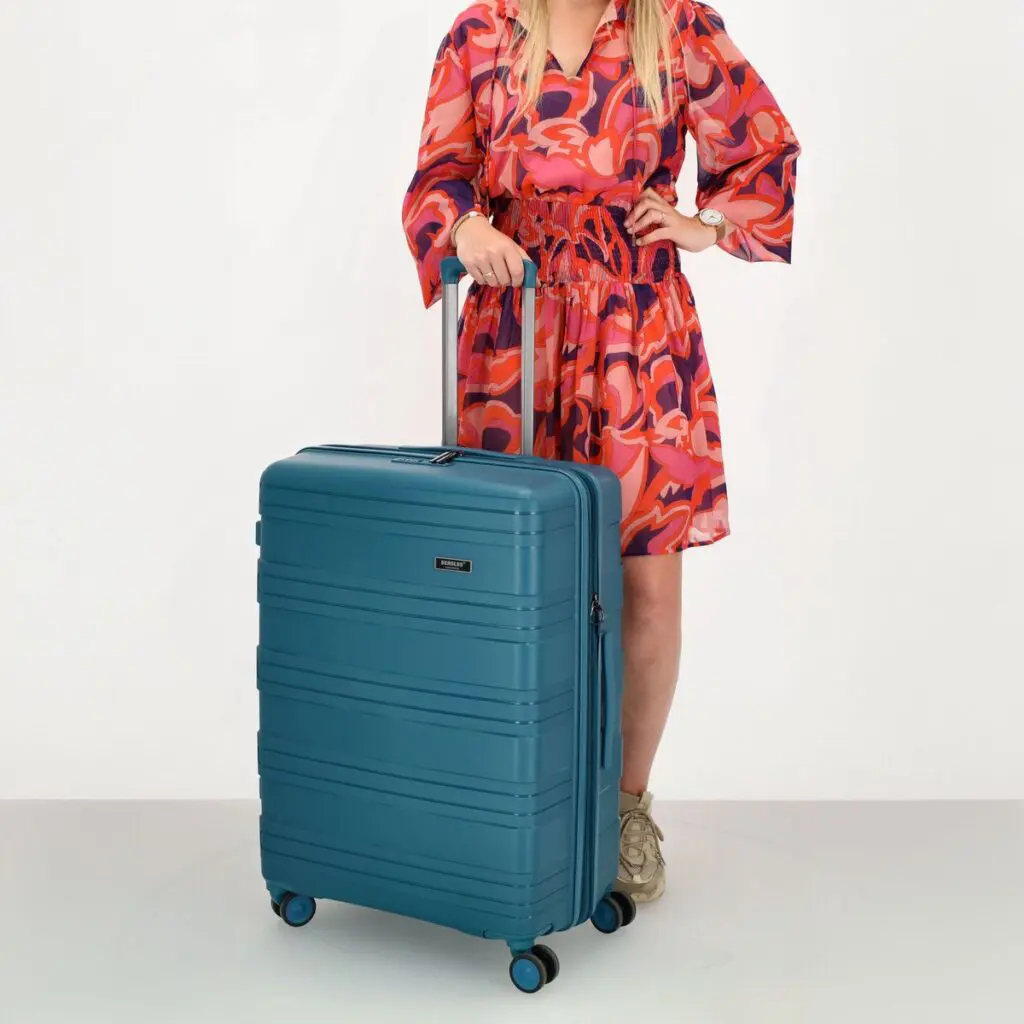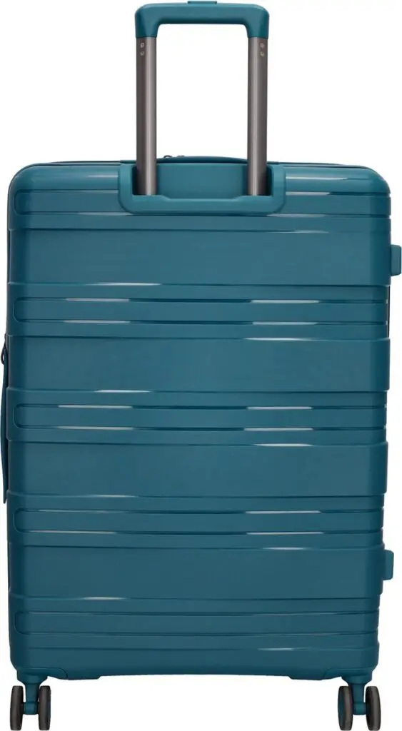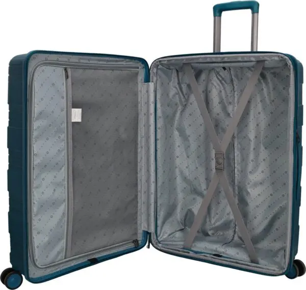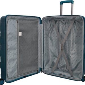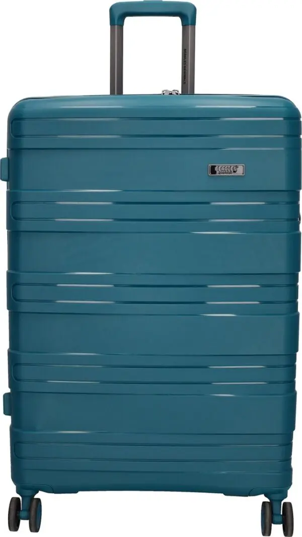 Stór, hörð ferðataska úr pólýprópýleni úr Travel Originals línunni frá Beagles Originals . Ferðataskan er með rennilás í fullri lengd sem hægt er að læsa með föstum TSA samsetningarlás að ofan. Innra byrðið er fóðrað og inniheldur rennilásarhólf, vasa með rennilás og ólar. Hún er einnig með handföng að ofan og á hliðunum og þægilegt tvöfalt fjögurra hjóla kerfi.