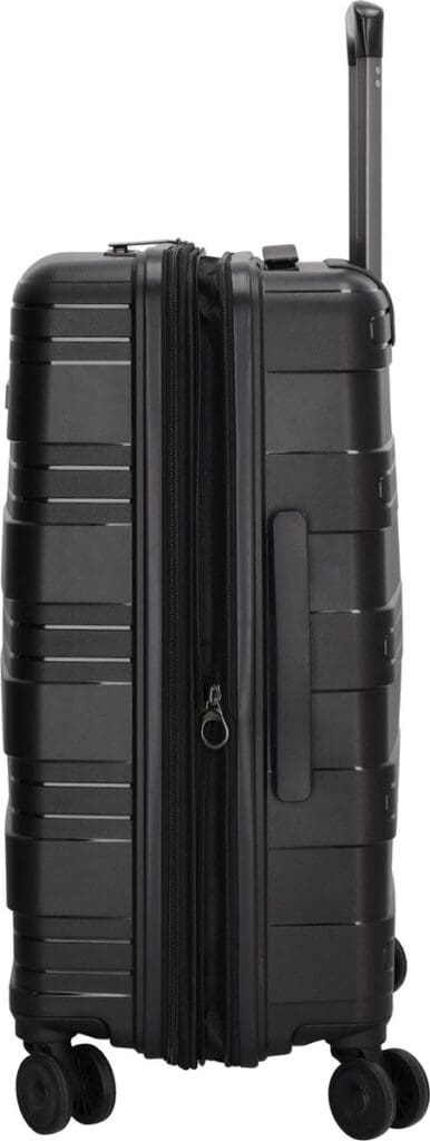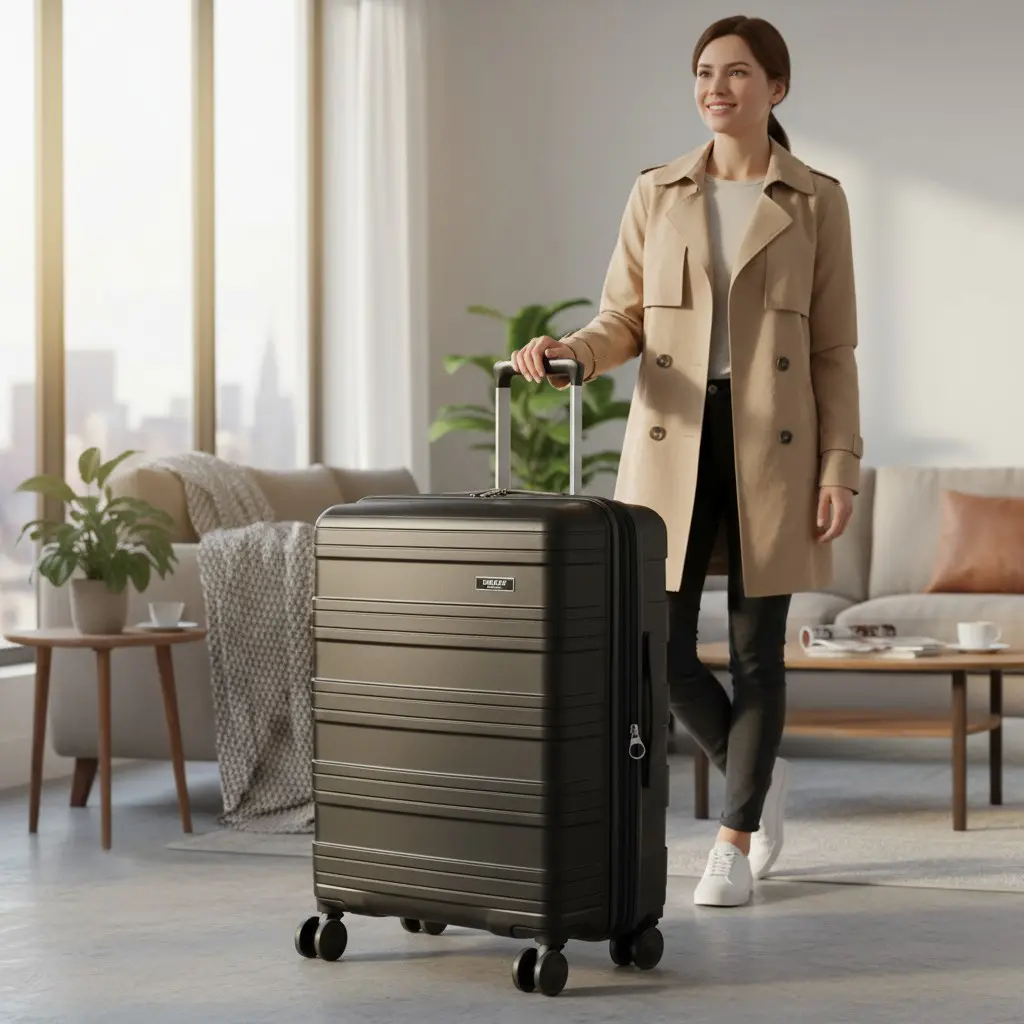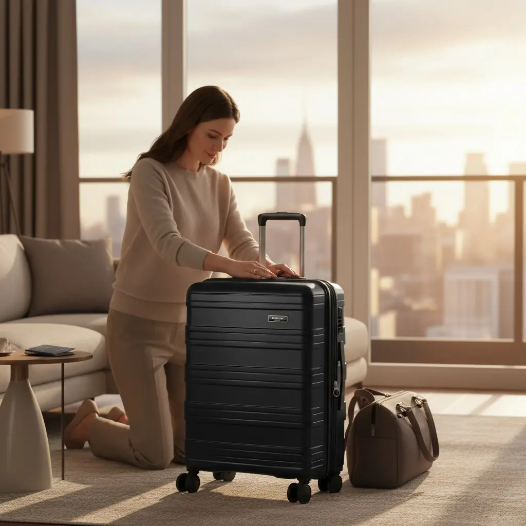Hún er búin TSA lás, fjórum snúningshjólum og stillanlegri dráttarstöng, sem tryggir auðvelda flutninga á flugvöllum og í borgum. Handföng bæði að ofan og á hliðunum gera það auðvelt að lyfta ferðatöskunni upp á og af farangursvagninum.