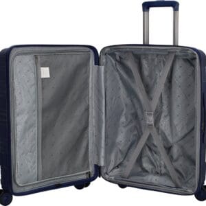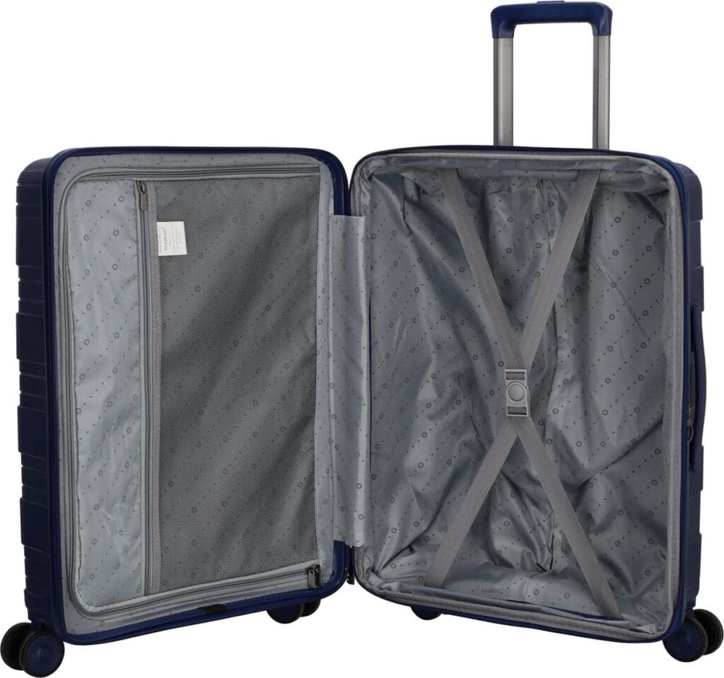 Að innan er ferðataskan skipt í tvo hluta: Önnur hliðin er hægt að loka með skilrúmi sem hefur hagnýtan möskvavasa fyrir smáhluti, en hin hliðin er með festingarólum sem halda fötum á sínum stað á meðan á ferð stendur.