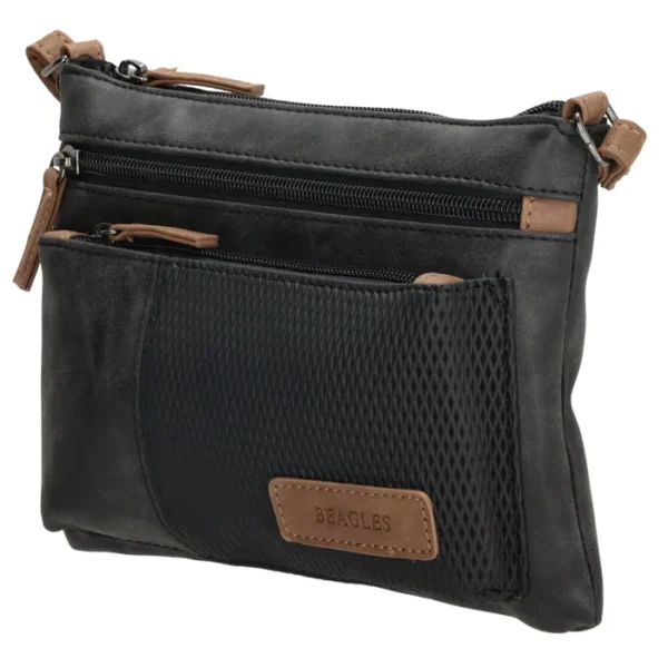 Þessi Beagles axlartaska úr Brunete línunni er algjörlega töff. En auk þess að vera töff er hún líka mjög hagnýt. Af hverju? Þú berð töskuna með stillanlegri axlaról. Taskan er með fimm hólf, þar á meðal símavasa. Aðalhólfið lokast með rennilás. Að auki er taskan með einstöku mynstri að framan sem gerir hana sannarlega þína eigin!
