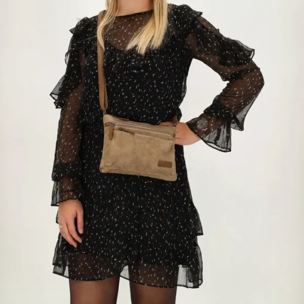 Þessi Beagles axlartaska úr Brunete línunni er algjörlega töff. En auk þess að vera töff er hún líka mjög hagnýt. Af hverju? Þú berð töskuna með stillanlegri axlaról. Taskan er með fimm hólf, þar á meðal símavasa. Aðalhólfið lokast með rennilás. Að auki er taskan með einstöku mynstri að framan sem gerir hana sannarlega þína eigin!