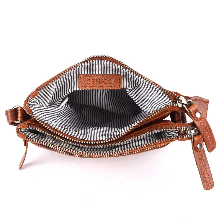 Þessi fallega leður crossbody taska er fullkomin fyrir dagleg klæðnað. Hún er hönnuð úr úrvalsleðri og er með rúmgott aðalhólf og innri vasa til að halda nauðsynjum þínum skipulögðum. Stillanleg og færanleg axlaról gerir það auðvelt að bera hana hvort sem er á venjulegum dögum eða annasömum kvöldum. Smellulokun og ytri vasi með rennilás veita hugarró til halda verðmætum þínum öruggum. Þetta er fjölhæf stærð til að geyma allar daglegar nauðsynjar frá síma og lyklum til förðunar og fleira.