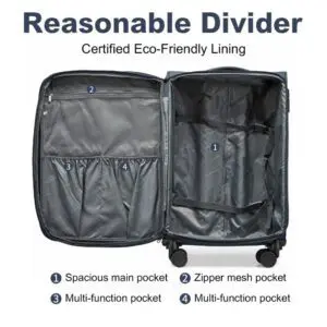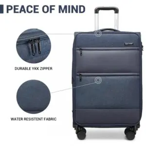 Framhlið þessarar ferðatösku er skreytt British Traveller merkinu og er einnig með tvo rennda vasa til að fá skjótan aðgang að litlum hlutum.