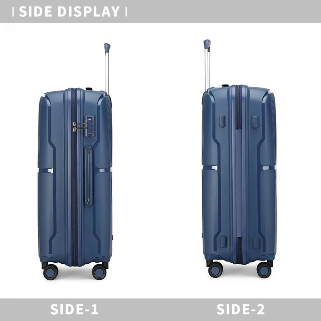 Pólýprópýlen (PP) er kjörið efni fyrir farangur í flugvélum. Það þolir stór fall og er sprengjuþolið með mjög mikilli endingu. Pólýprópýlenið mun strax endurkastast eftir árekstur við annan hlut og veitir framúrskarandi vörn fyrir farangurinn þinn.