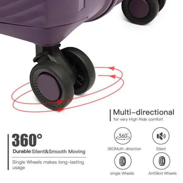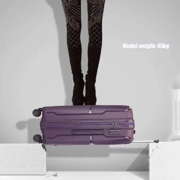 Pólýprópýlen (PP) er kjörið efni fyrir farangur í flugvélum. Það þolir stór fall og er sprengjuþolið með mjög mikilli endingu. Pólýprópýlenið mun strax endurkastast eftir árekstur við annan hlut og veitir framúrskarandi vörn fyrir farangurinn þinn.