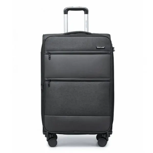 Framhlið þessarar ferðatösku er skreytt British Traveller merkinu og er einnig með tvo rennda vasa til að fá skjótan aðgang að litlum hlutum.