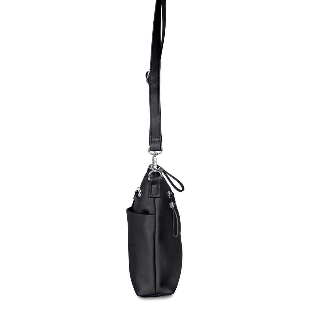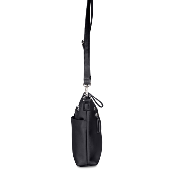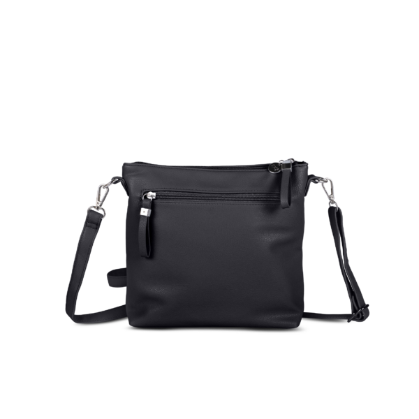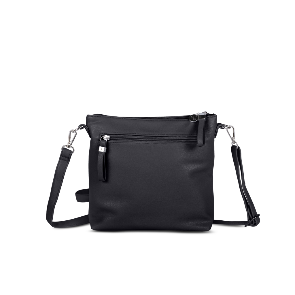 Með örlítið rétthyrndri lögun og mjóri 6 cm dýpt virðist kventaskan nett, en býður samt upp á ótrúlega mikið hagnýtt geymslurými. Stærri vasi að framan gerir kleift að nálgast hann fljótt, ásamt renniláshólfi að framan og öðru að aftan – tilvalið fyrir daglega skipulagningu. Auðveldir PU rennilásar bæta við lúmskum áherslum og eru þægilegir í meðförum. Stillanleg og aftakanleg axlaról býður upp á sveigjanlega burðarmöguleika. Hagnýt, nútímaleg og fjölhæf.