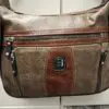 CHARM AND SHAPE BRÚN Með 2 aðalhólf annað með rendum vasa og hitt með símavasa.Aðaftan er rendur vasi og að framan er annar rendur vasi ásamt opnum vasa.