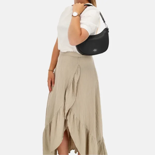 Þessi Charm London Montmartre axlartaska er stílhrein og hagnýt taska, fullkomin fyrir daglega notkun. Þessi taska er með glæsilegri hönnun og er úr fínu efni fyrir lúxus útlit. Rúmgott aðalhólfið og fleiri innri vasar bjóða upp á nóg pláss til að halda öllum eigum þínum skipulagt. Stillanleg axlaról gerir töskuna þægilega og auðvelda að bera. Charm London Montmartre axlartaskan er fjölhæf taska sem passar við hvaða búning sem er og er tilvalin fyrir hvaða tilefni sem er.