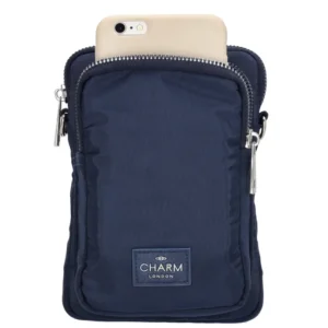 Símataska er ómissandi í úrvalinu þínu. Þeir eru orðnir staðalbúnaður í skáp kvenna. Þessi símataska frá Charm London er vatnsfráhrindandi sem gerir þessa símatösku einstaka. Taskan er með rennilás að framan, aðal og aftan. Það inniheldur einnig auka, lítill poki sem getur geymt lykla eða lausa peninga. Axlarbandið er stillanlegt og færanlegt.