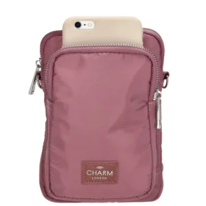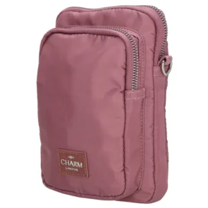 Símataska er ómissandi í úrvalinu þínu. Þeir eru orðnir staðalbúnaður í skáp kvenna. Þessi símataska frá Charm London er vatnsfráhrindandi sem gerir þessa símatösku einstaka. Taskan er með rennilás að framan, aðal og aftan. Það inniheldur einnig auka, lítill poki sem getur geymt lykla eða lausa peninga. Axlarbandið er stillanlegt og færanlegt.
