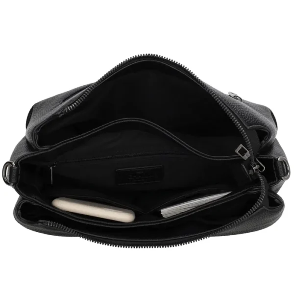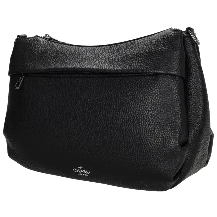 Charm London Pentonville öxltaskan er glæsileg og hagnýt taska, fullkomin til daglegrar notkunar. Þökk sé þremur rúmgóðum aðalhólfum geturðu geymt allar eigur þínar snyrtilega skipulagðar. Miðhólfið er með tveimur rennilásvasum og auka rennilásvasa, tilvalið fyrir örugga geymslu á smærri hlutum. Að auki er taskan með auka rennilásvasa bæði að framan og aftan, svo þú getir fljótt nálgast mikilvægustu hlutina þína.