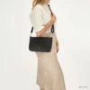 Taskan er með tveimur axlarólum: stuttri leðuról til að bera töskuna þægilega yfir öxlina og langri axlaról sem er stillanleg og færanleg – handhægt ef þú vilt frekar bera töskuna án handa.