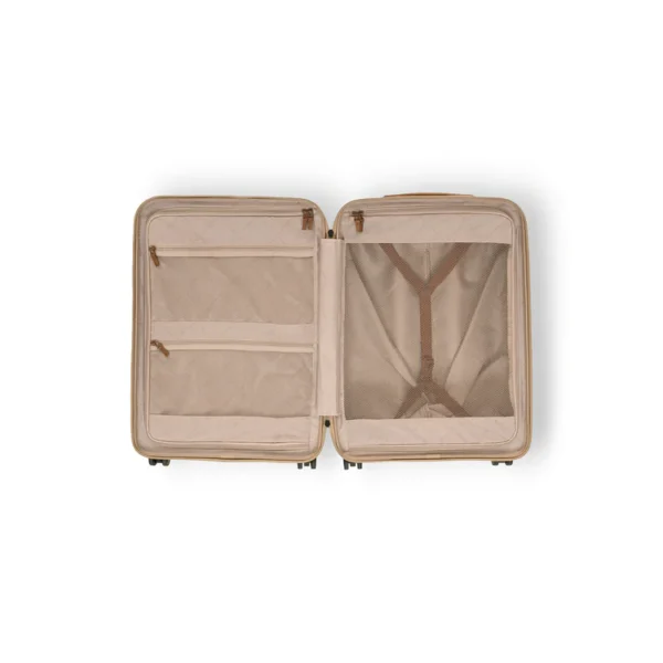 Ferðatöskurnar eru úr sterku pólýkarbónati ásamt mjúku kúaleðri, sem gerir ferðatöskuna þína tilbúna til langtímanotkunar og gefur henni lúxuslegt útlit. Þökk sé hljóðlátum 360° hjólum, sterku sjónaukahandfangi og öruggu TSA lásinum, nær þessi lína fullkominni jafnvægi milli glæsileika, styrks og nýsköpunar.