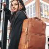 Töff leðurbakpoki til daglegra nota. Rúmgott aðalhólf og styrkt hólf fyrir fartölvu og spjaldtölvu gera þennan Belford leðurbakpoka að raunverulegum vini allra. Fullkominn samsvörun fyrir borgarferð, verslunardag, skóladag eða viðskiptatíma.