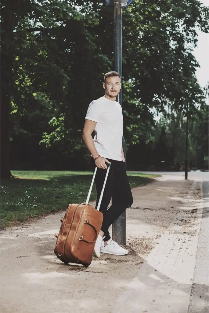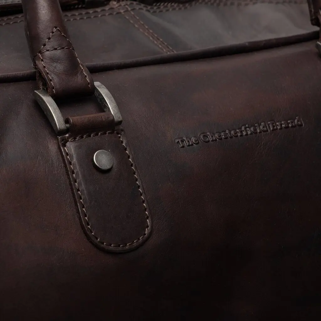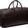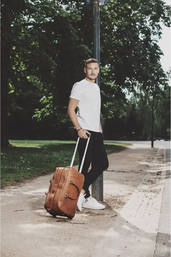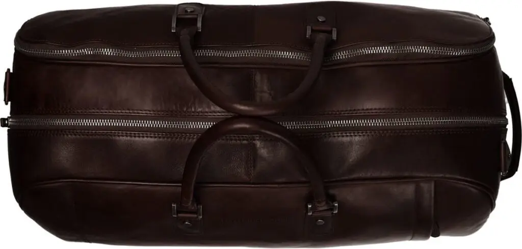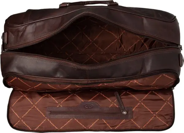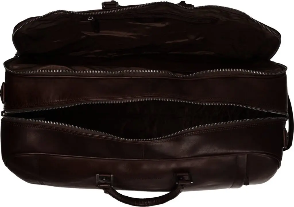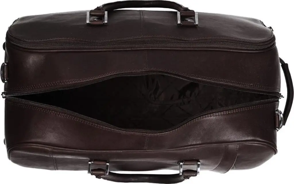 Einstök ferðataska úr leðri með traustu kerrukerfi, þægilegum hjólum og rúmum 47 lítrum.Þessi ferðataska úr leðri er fullkomin fyrir helgarferð eða viðskiptaferð. Ferðataskan í kerru er búin tveimur stórum almennum hólfum, ýmsum geymsluhólfum að innan og axlaról sem hægt er að taka af. Bæristöngin sem fellur saman er fallega falin og ferðataskan er með traustu handfangi að ofan.