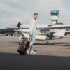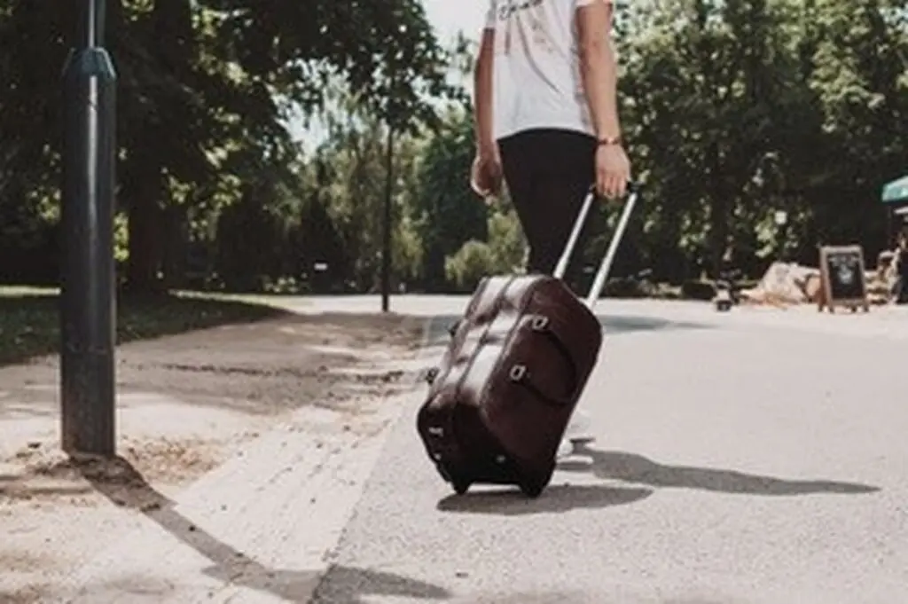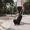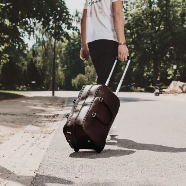 Einstök ferðataska úr leðri með traustu kerrukerfi,