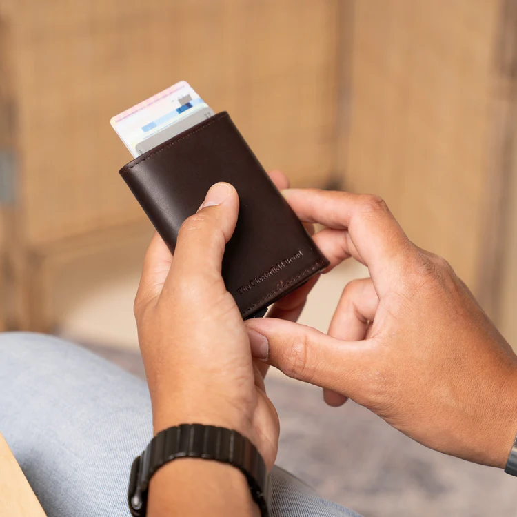 Chesterfield kortaveski Lancaster með RFID vörn Dökk Brúnt