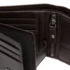 Vinstra megin eru þrjár kortaraufar fyrir mikilvægustu kortin þín. Að auki finnur þú sterkan smellu sem gerir þér kleift að opna vinstri hliðina enn frekar og afhjúpa tvær gegnsæjar raufar, fullkomnar fyrir skilríki, ökuskírteini eða minjagrip sem þú vilt geyma nálægt þér. Hægra megin á veskinu er myntvasi með smellu sem tryggir að lausapeningarnir þínir séu geymdir á öruggan hátt.
