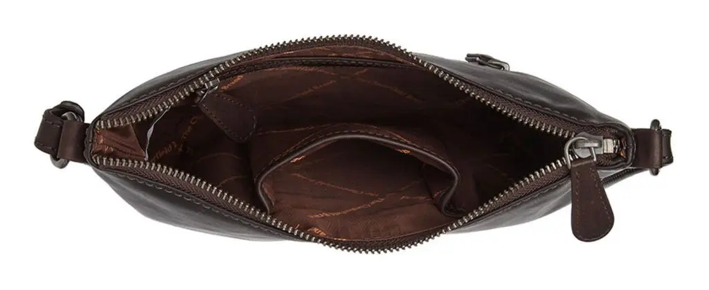 Með þessari leðuraxlartösku fylgir stillanleg axlaról sem gerir þér kleift að stilla töskuna að þinni lengd og klæðastíl. Hvort sem þú hengir hana yfir öxlina eða klæðist henni þversum, þá mun þessi taska vera þægileg. Aðalhólfið lokast með rennilás. Hér getur þú meðal annars geymt veskið þitt, lykla og sólgleraugu. Í aðalhólfinu eru nokkrir vasar, einn þeirra lokast með rennilás. Það er líka hólf sérstaklega fyrir símann þinn. Þannig geymir þú ekki aðeins dótið þitt á öruggan hátt heldur á skipulagðan hátt. Að aftan er einnig vasi með rennilás.