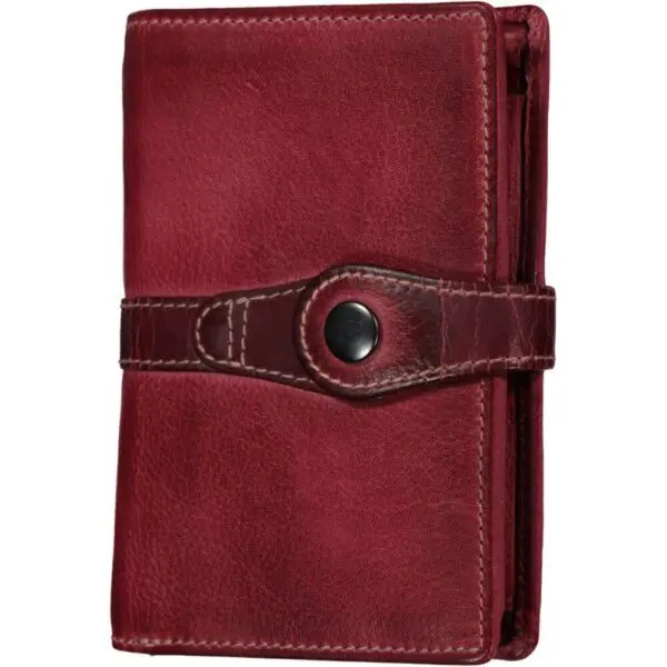 Stílhreint kvenveski úr ekta leðri með örlítið slitinni áferð. Það festist með hagnýtri ól með málmlás, sem tryggir öryggi og stílhreina áferð. Að innan eru fjölmörg hólf fyrir kort, skjöl og seðla sem auðvelda skipulag. Að auki er veskið búið RFID-tækni sem verndar gögn gegn rafrænum þjófnaði.