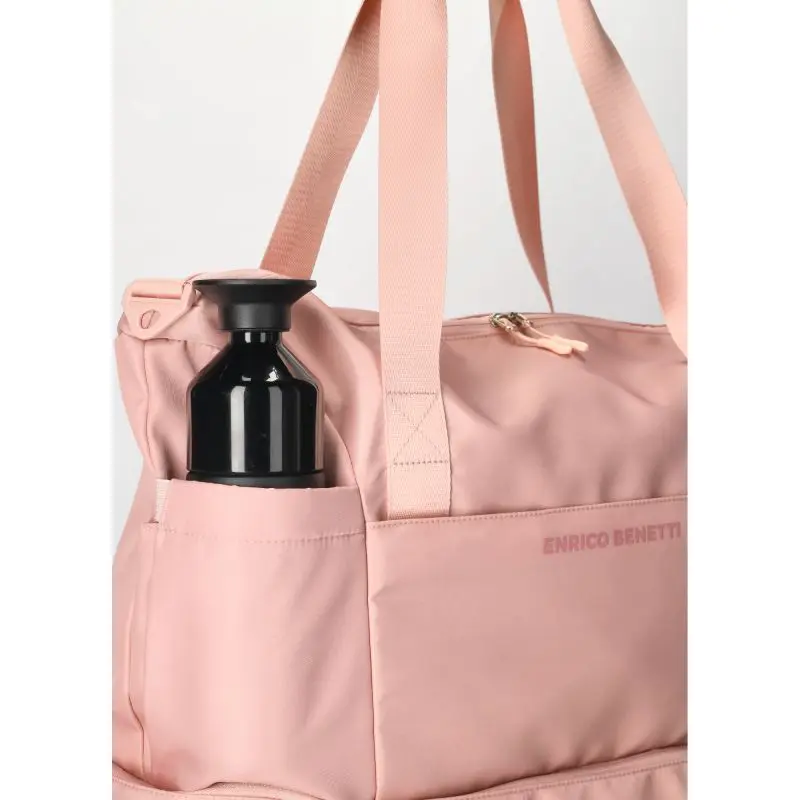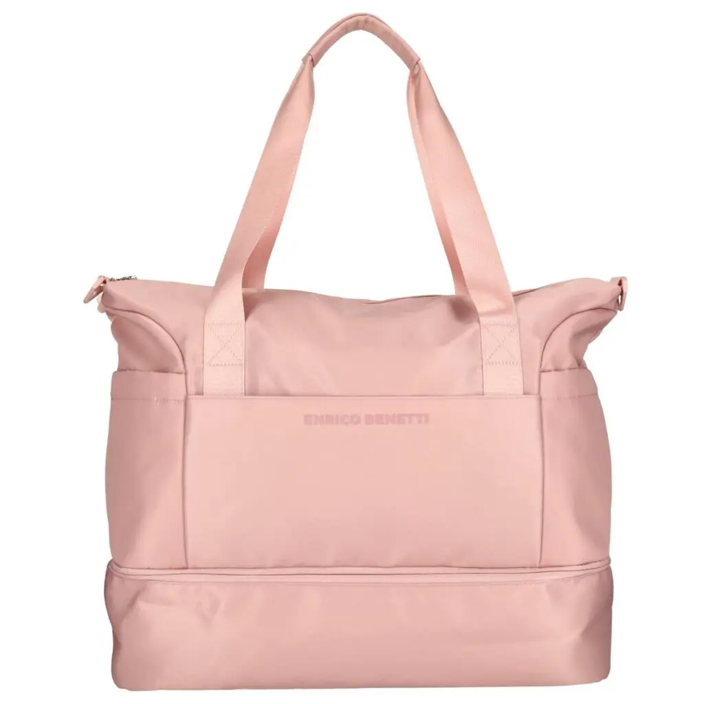 Íþróttir, helgarfrí, aukafarangur í frí eða vantar þig bara fallega rúmgóða tösku? Þá ertu á réttum stað með þetta eintak. Þessi taska er frá Enrico Benetti merkinu og er meira að segja með skóhólf neðst. Þetta heldur fötunum þínum hreinum vegna þess að þau eru aðskilin frá skónum þínum. Ennfremur er taskan með nokkrum rennilásum og vösum þar sem þú getur geymt eigur þínar. Tilvalið! Tekurðu þessa helgar/íþróttatösku með næst? Fartölvustærð 13"