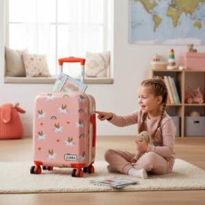 Hversu ofur sætt! Þessi sæta litla ferðataska er fullkomin fyrir ferðina ykkar. Teygjanleg ól og rennilás inni í hulstrinu halda öllu snyrtilega á sínum stað. Sætu myndirnar gera ferðatöskuna fullkomna.
