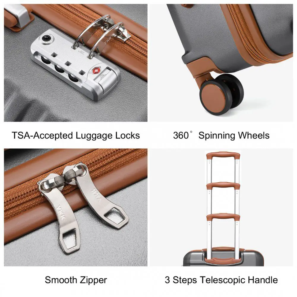 Einstakt áferðaryfirborð þessarar ferðatösku eykur rispuþol, tekst frábærlega á við álag og álag flutninga og heldur farangri fallegum í hverri ferð.Þetta ferðatöskusett er úr POLYCARBONATE og ABS efni.