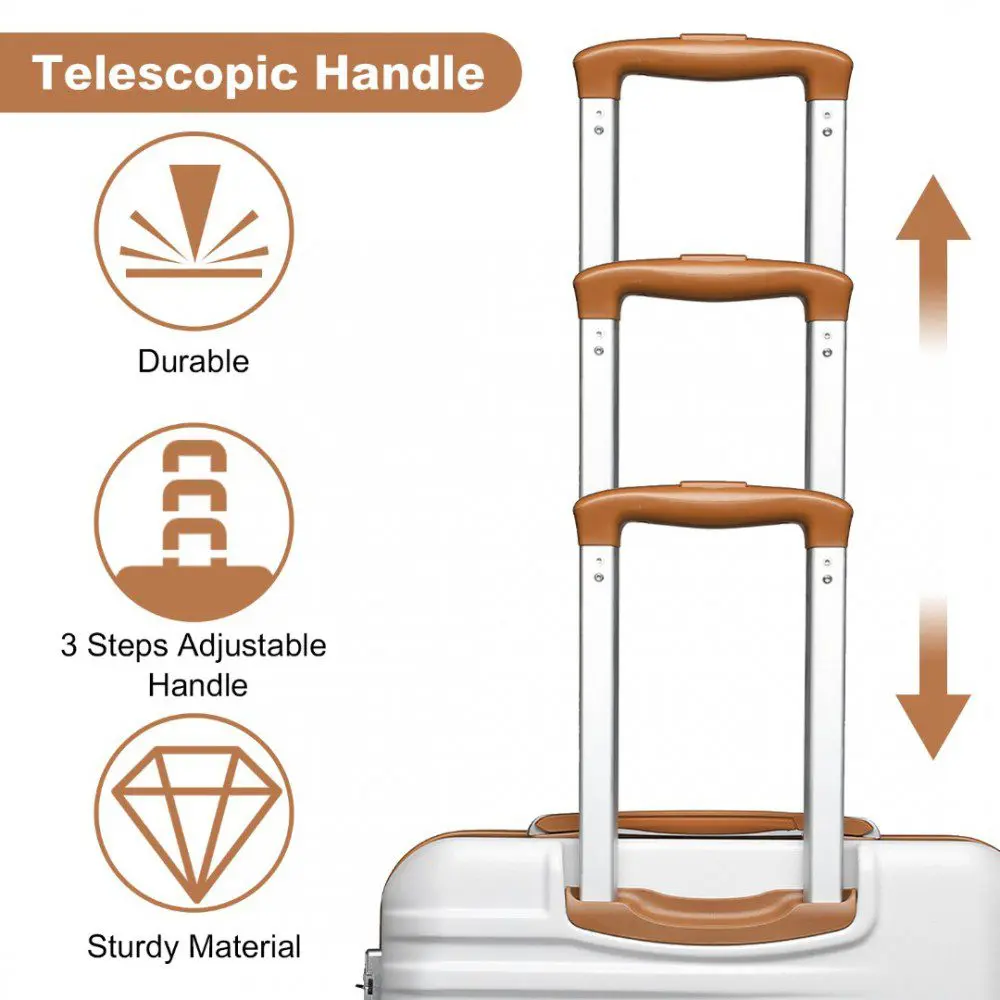 Einstakt áferðaryfirborð þessarar ferðatösku eykur rispuþol, tekst frábærlega á við álag og álag flutninga og heldur farangri fallegum í hverri ferð.Þessi ferðataska er úr POLYCARBONATE og ABS efni. Pólýkarbónat og ABS gera þessa ferðatösku sterka og endingargóða. Með fjórum 360 snúnings TPE-hjólum sem eru hljóðlát og er auðvelt að stýra. TSA lás býður upp á hámarks öryggi. Þessi lás gerir kleift að opna farangurinn þinn og skoða hann af öryggisyfirvöldum án skemmda. Ekki er auðvelt að stinga rennilás með skörpum verkfærum eins og pennum, sem veitir betri vernd fyrir innihald og næði ferðatöskunnar. Það eru fjórir plastfætur á hliðinni til að hvíla pokann á.