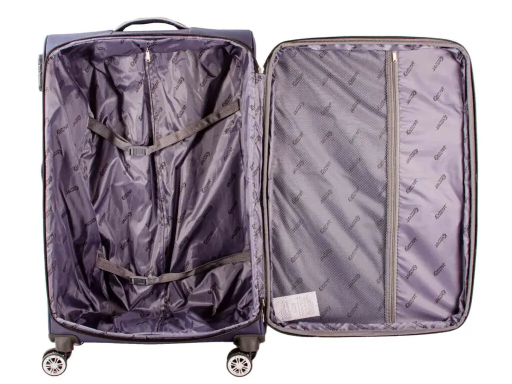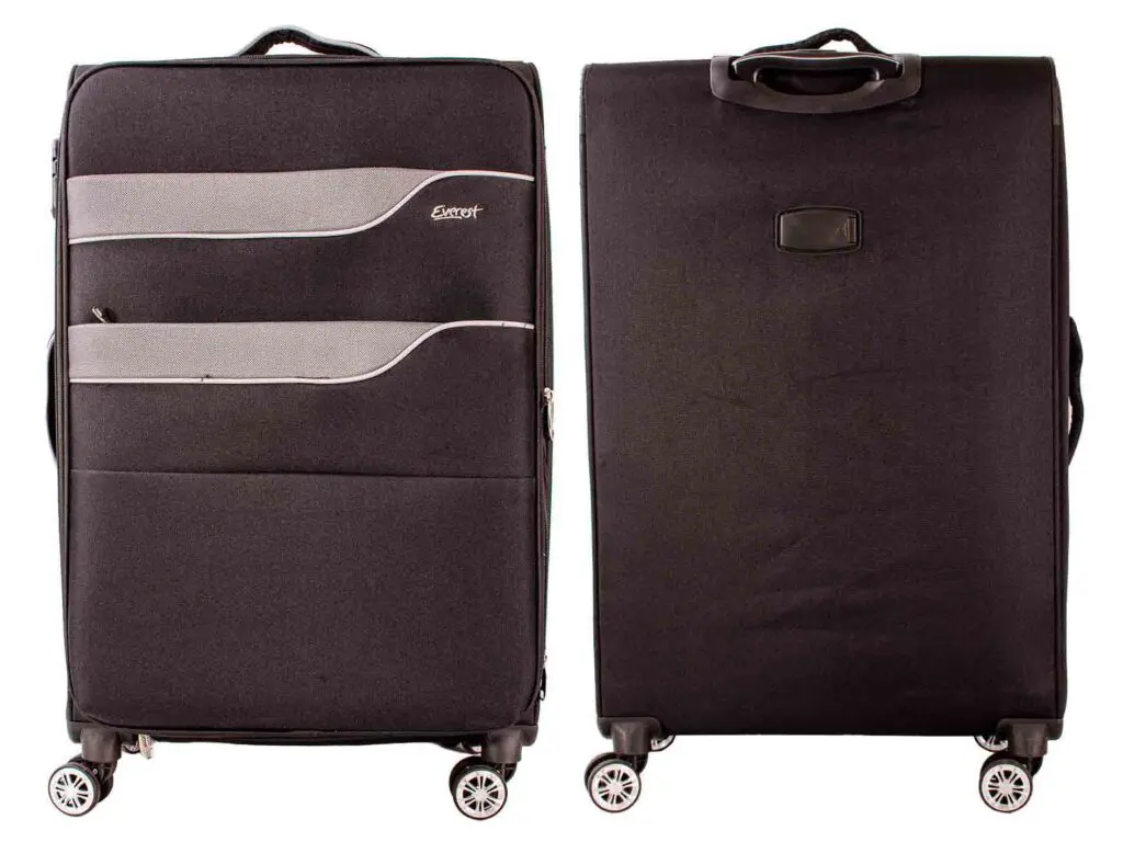 2 vasar með rennilás að framan. Stækkanlegt fyrir auka pláss. Eitt stórt aðalhólf með sylgjulásum til að halda fötunum Ytra efni úr 100% POLYESTER = Létt og endingargott!