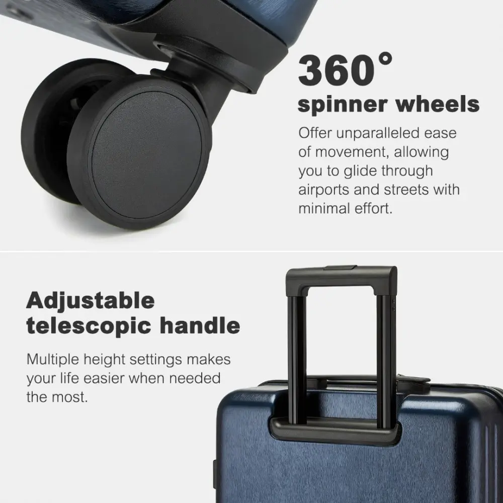 Stillanlegt sjónaukahandfang, ásamt sterkum handföngum að ofan og á hliðinni, gerir farangurinn mögulegan á fjölbreyttan hátt. Að auki gera fjórir stöðugleikafætur á hliðinni kleift að standa uppréttur þegar þörf krefur.
