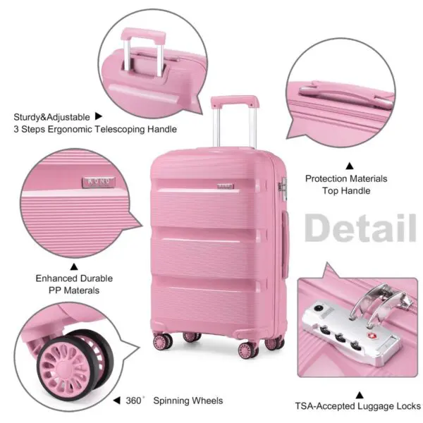 Hágæða pólýprópýlen fyrir sterka og endingargóða ferðatösku Nægt pláss fyrir allar ferðaþarfir þínar frá löngu helgarfríi eða til lengri ferðar. 4 x 360° snúningshjól dreifa þyngd ferðatöskunnar jafnt og tryggja auðvelt svifflug um upptekna flugvelli eða lestarstöðvar. Inndraganlegt, auðvelt grip með mörgum hæðarstillingum. TSA býður upp á hámarks öryggi. Þessi lás gerir öryggisyfirvöldum kleift að opna farangurinn þinn og skoða hann án skemmda. Það eru tvö venjuleg handföng – eitt að ofan og eitt á hliðinni. Fjórir plastfætur á hliðinni til að hvíla pokann á.