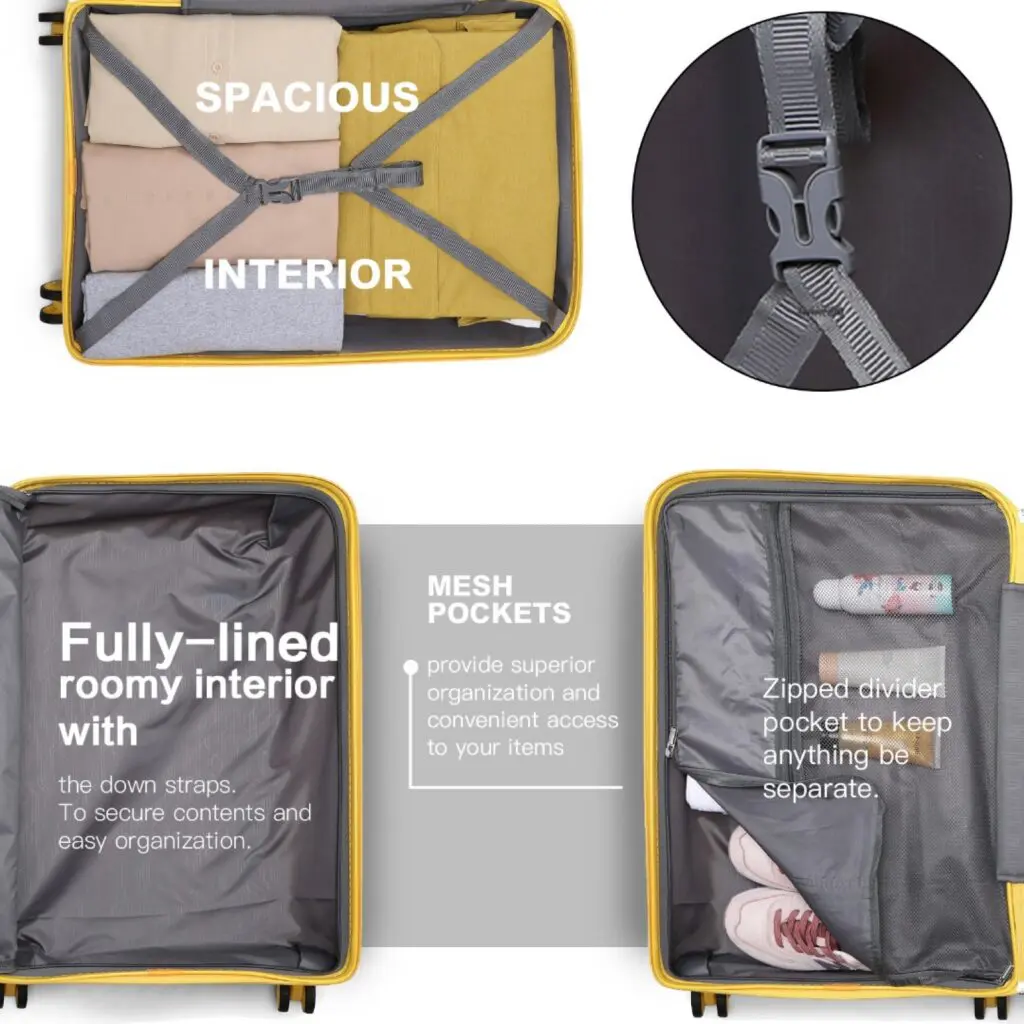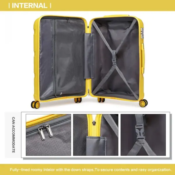 Hágæða pólýprópýlen fyrir sterka og endingargóða ferðatösku Nægt pláss fyrir allar ferðaþarfir þínar frá löngu helgarfríi eða til lengri ferðar. 4 x 360° snúningshjól dreifa þyngd ferðatöskunnar jafnt og tryggja auðvelt svifflug um upptekna flugvelli eða lestarstöðvar. Inndraganlegt, auðvelt grip með mörgum hæðarstillingum. TSA býður upp á hámarks öryggi. Þessi lás gerir öryggisyfirvöldum kleift að opna farangurinn þinn og skoða hann án skemmda. Það eru tvö venjuleg handföng – eitt að ofan og eitt á hliðinni. Fjórir plastfætur á hliðinni til að hvíla pokann á.