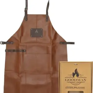 Athugið konur og menn,flott leður grillsvunta! Þú vilt þessa svuntu fyrir allar sumarnæturnar sem fela í sér gæðastundir við grillið! Hægt er að stilla svuntuna um hálsinn og mitti eftir þínum þörfum. Með vasa að framan er hægt að setja nokkra lausa hluti og ólar fyrir áhöld sem gott er að hafa við hendina. Við elskum þessa fallegu leðursvuntu, ekki satt?