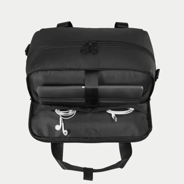 Rúmgott innanrými: Innra rúmmálið er 24 lítrar og eykst í 28 lítra þegar það er stækkað. Rifþolið innra fóður með 3 innri rennilásum og 2 opnum vösum.