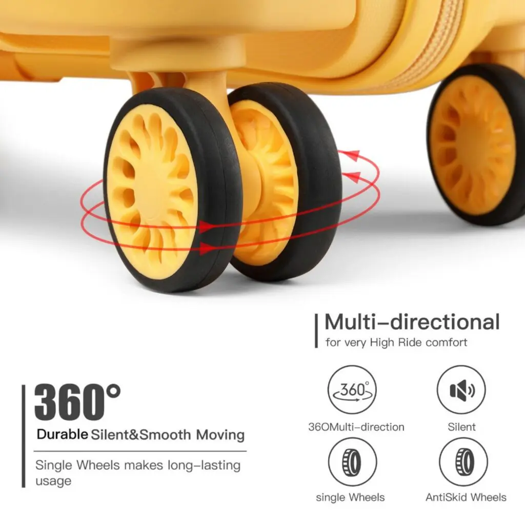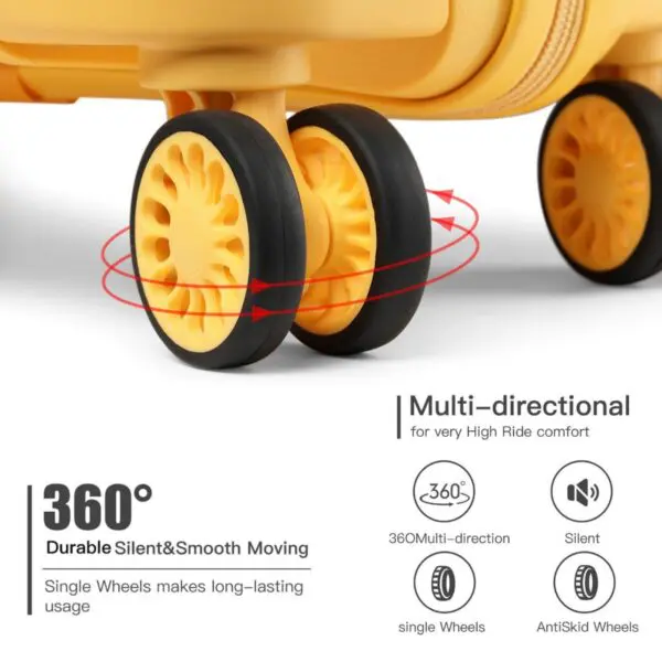 Fjögur 360° snúningshjól dreifa þyngd ferðatöskunnar jafnt og tryggja auðvelda för um annasama flugvelli eða lestarstöðvar.