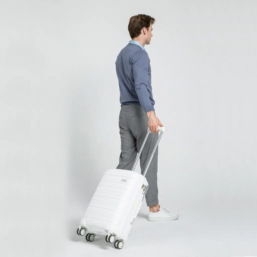 4 x 360°snúningshjól dreifa þyngd ferðatöskunnar jafnt og tryggja að auðvelt sé að renna um annasama flugvelli eða lestarstöðvar.