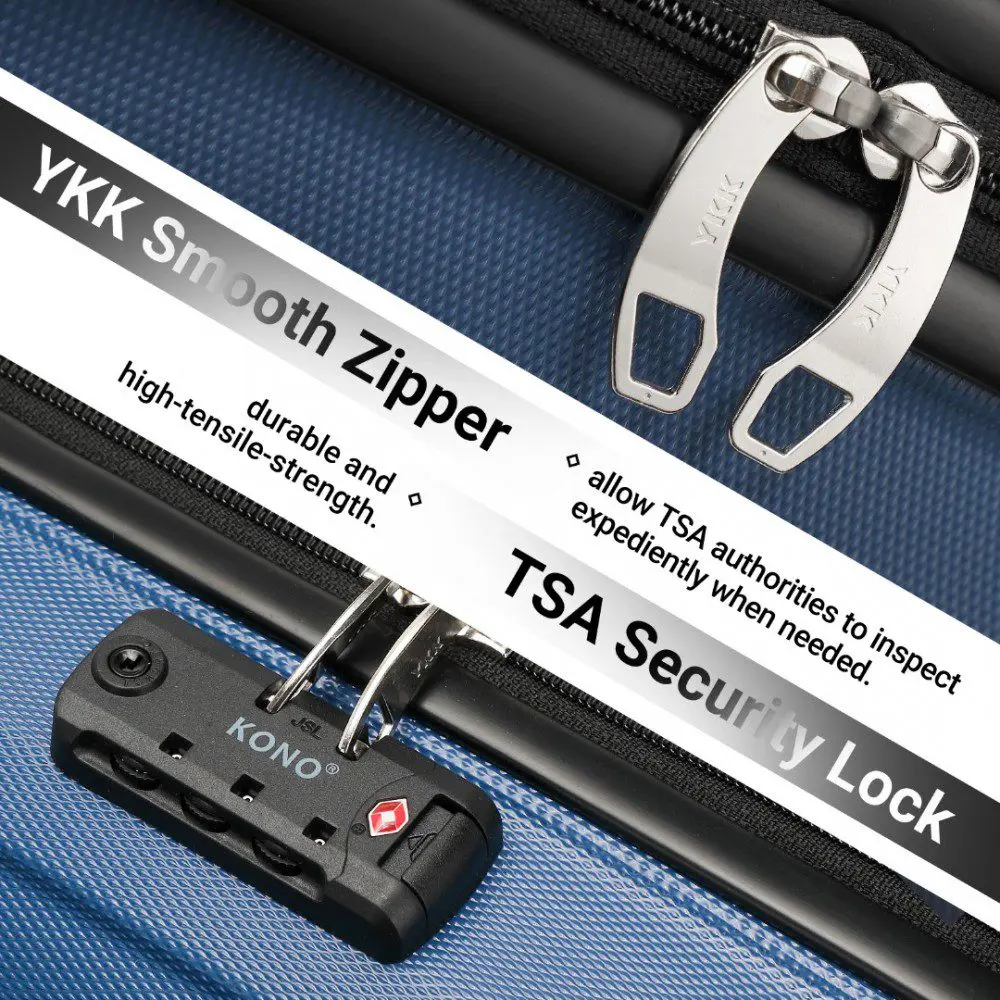 A TSA samþykkt fast 3 hringja samsetningu læsa til að bjóða upp á hámarks öryggi. Þessi lás gerir öryggisyfirvöldum kleift að opna farangurinn þinn og skoða hann án skemmda.Aðalhólfið er með nælonólum með sylgju sem getur fest innihaldið á annarri hliðinni, hin hliðin er fest með rennilás.