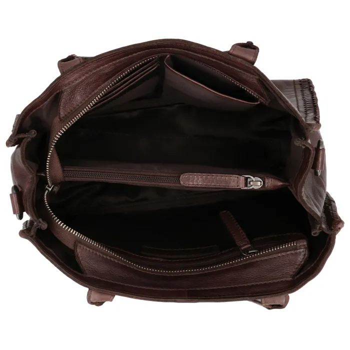 Hide & Stitches Inspired by Country handtaskan er stílhrein og hagnýt taska, hönnuð til daglegrar notkunar. Hún er úr hágæða leðri og með fléttuðum kanti og geislar af karakter og klassa.