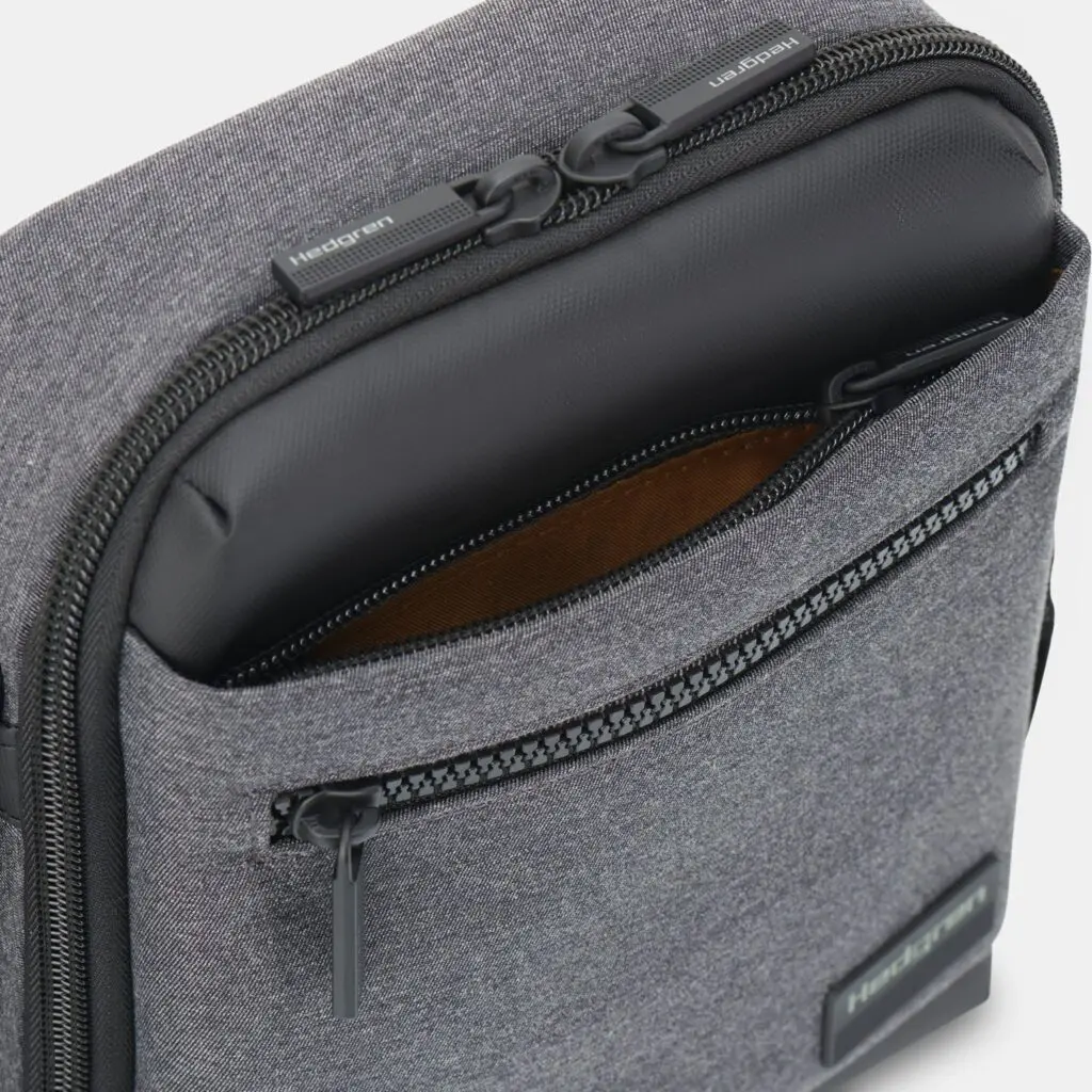 Lítill en kraftmikill App lóðrétt crossover taska er fullkominn fyrir manninn á ferðinni. Með öllu sem þú þarft,þar á meðal pláss fyrir litla spjaldtölvu, síma og lyklakrók, mun þessi taska halda þér skipulagðri þegar þú hleypur á milli funda. Hún lítur líka vel út, með dæmigerðum Hedgren-eiginleikum eins og rennilásnum okkar og einkennismerki. Sterka vatnsfráhrindandi efnið hrópar gæði, en uppbyggð hönnunin er gerð enn meira aðlaðandi þökk sé þægilegri leið sem hún situr yfir líkamann. Og með RFID vörn til að halda kortunum þínum og viðskiptaskjölum öruggum, þetta er frábært val fyrir hvern dag.